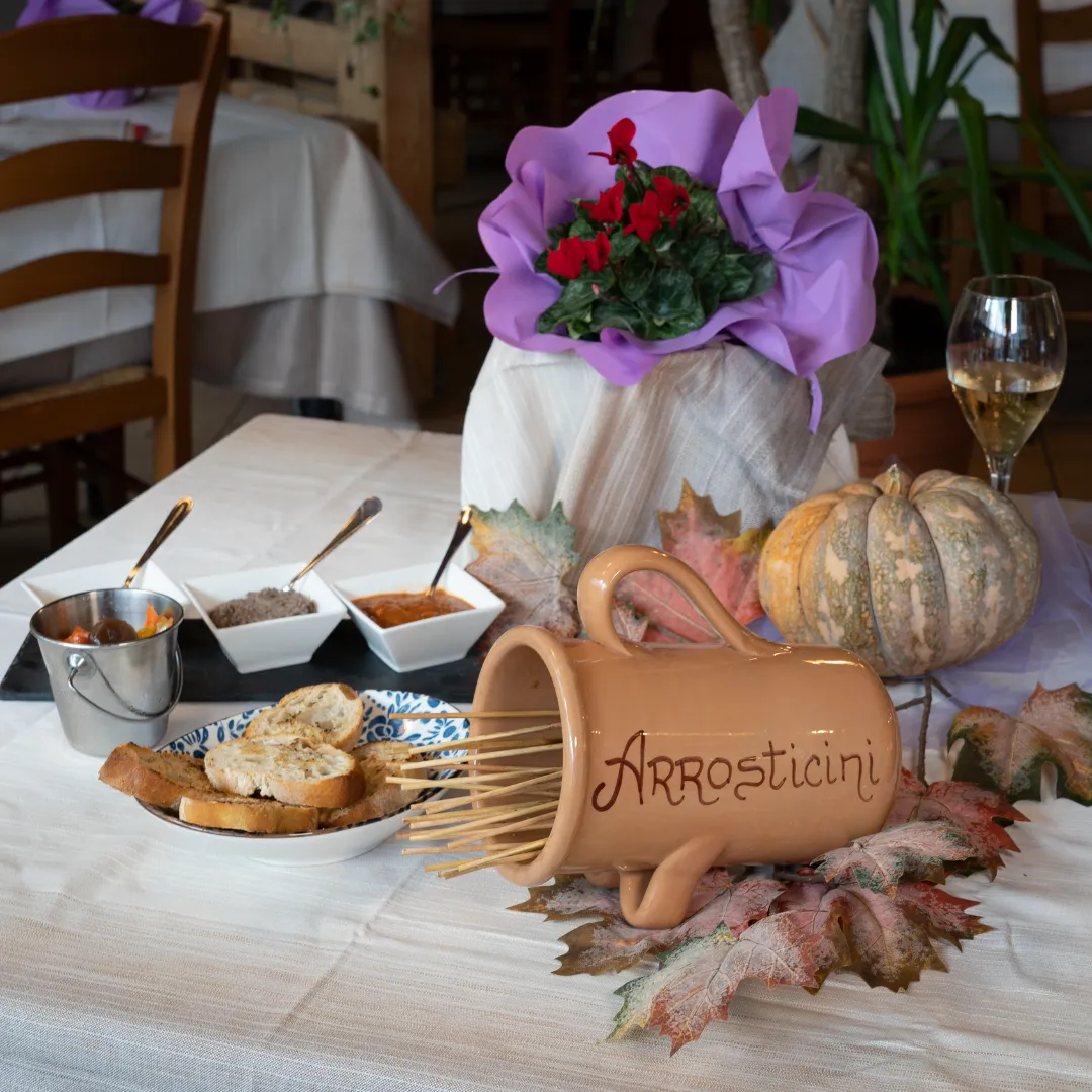 Goditi una bruschetta al lardo pistano, una cucchiaiata del nostro paté di fegatini, o le verdure dell’orto condite al momento.